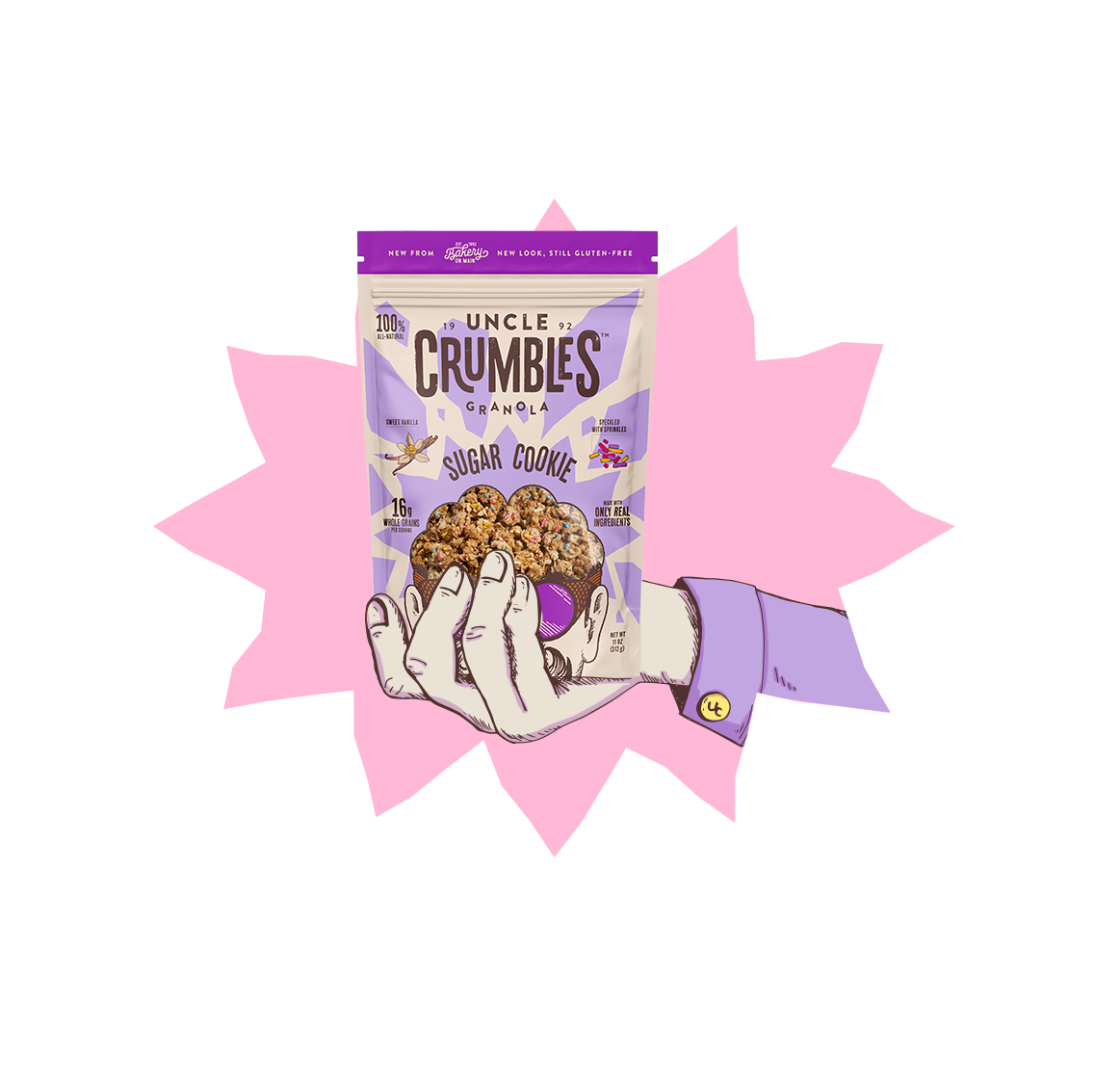 Sugar Cookie Granola is our all-natural take on a dessert for breakfast, crumbled up into thousands of sweet, tiny clusters. We started with our favorite sugar cookie recipe, then baked that creamy vanilla-frosting flavor into every bite of all-natural, 100% gluten-free granola.